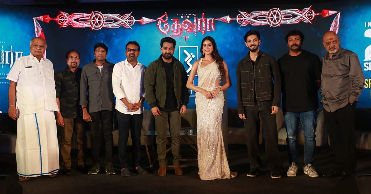 கொரட்டலா சிவா இயக்கத்தில் நடிகர்கள் ஜூனியர் என்.டி.ஆர்., ஜான்வி கபூர், பிரகாஷ்ராஜ் உள்ளிட்ட பலர் நடித்திருக்கும் ‘தேவரா’ படம் தெலுங்கு, தமிழ், கன்னடம் உள்ளிட்ட பல மொழிகளில் பான் இந்தியா படமாக செப்டம்பர் 27ஆம் தேதி வெளியாகிறது. இந்தப் படத்தின் பத்திரிக்கையாளர்கள் சந்திப்பு சென்னையில் நடைபெற்றது.