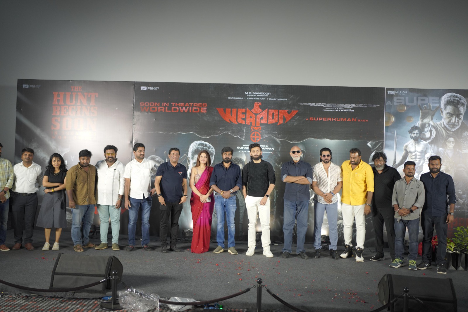 *மில்லியன் ஸ்டுடியோ புரொடக்ஷன்ஸ், எம்.எஸ். மன்சூர் வழங்கும் குகன் சென்னியப்பன் இயக்கத்தில், நடிகர்கள் சத்யராஜ் & வசந்த் ரவி நடித்துள்ள ’வெப்பன்’ திரைப்படத்தின் டிரெய்லர் வெளியீட்டு விழா!*