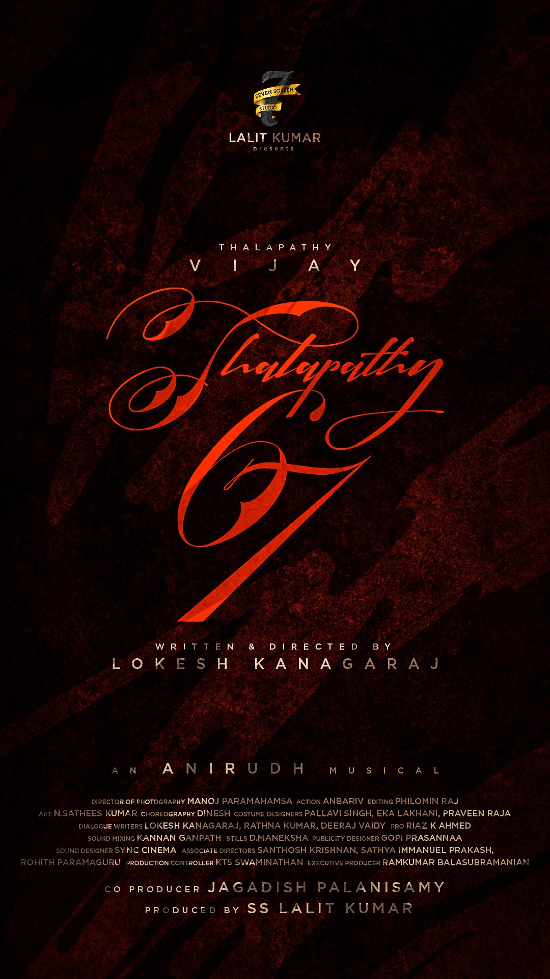 ‘தளபதி 67’ படத்தின் நடிகர்கள் மற்றும் குழுவினர் குறித்த கூடுதல் விவரங்கள் விரைவில் அறிவிக்கப்படும்.