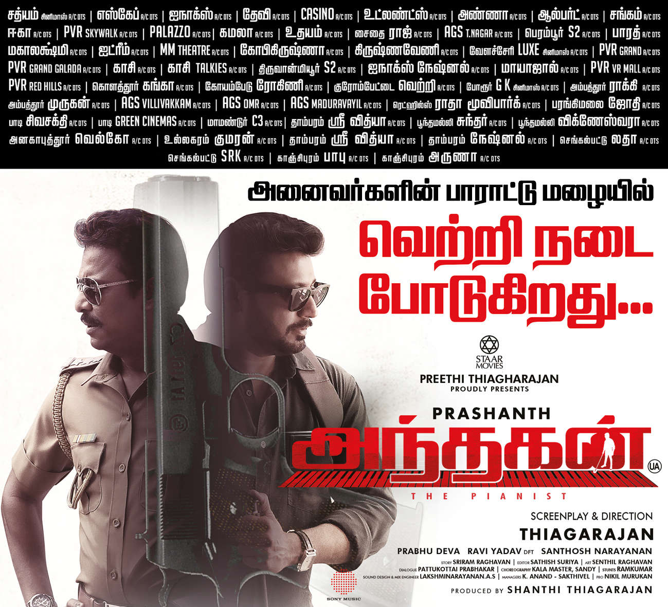 படம் முழுவதும் இசை வருவதால் சந்தோஷ் நாராயணனின் பின்னணி இசை படத்தை வேறு தளத்திற்கு எடுத்துச் சென்றுள்ளது. பாடல்கள் ஓகே ரகம். ரவி யாதவின் ஒளிப்பதிவு படத்திற்கு கூடுதல் பலம் எனலாம். சதீஷ் சூர்யாவின் எடிட்டிங் நன்று. மொத்தத்தில் சமீபத்தில் வந்த ரீமேக் படங்களில் அந்தகன் தனித்துவமாக வந்து நிற்கிறது. அந்தகன் – வெற்றி. ரேட்டிங் 3.5/5