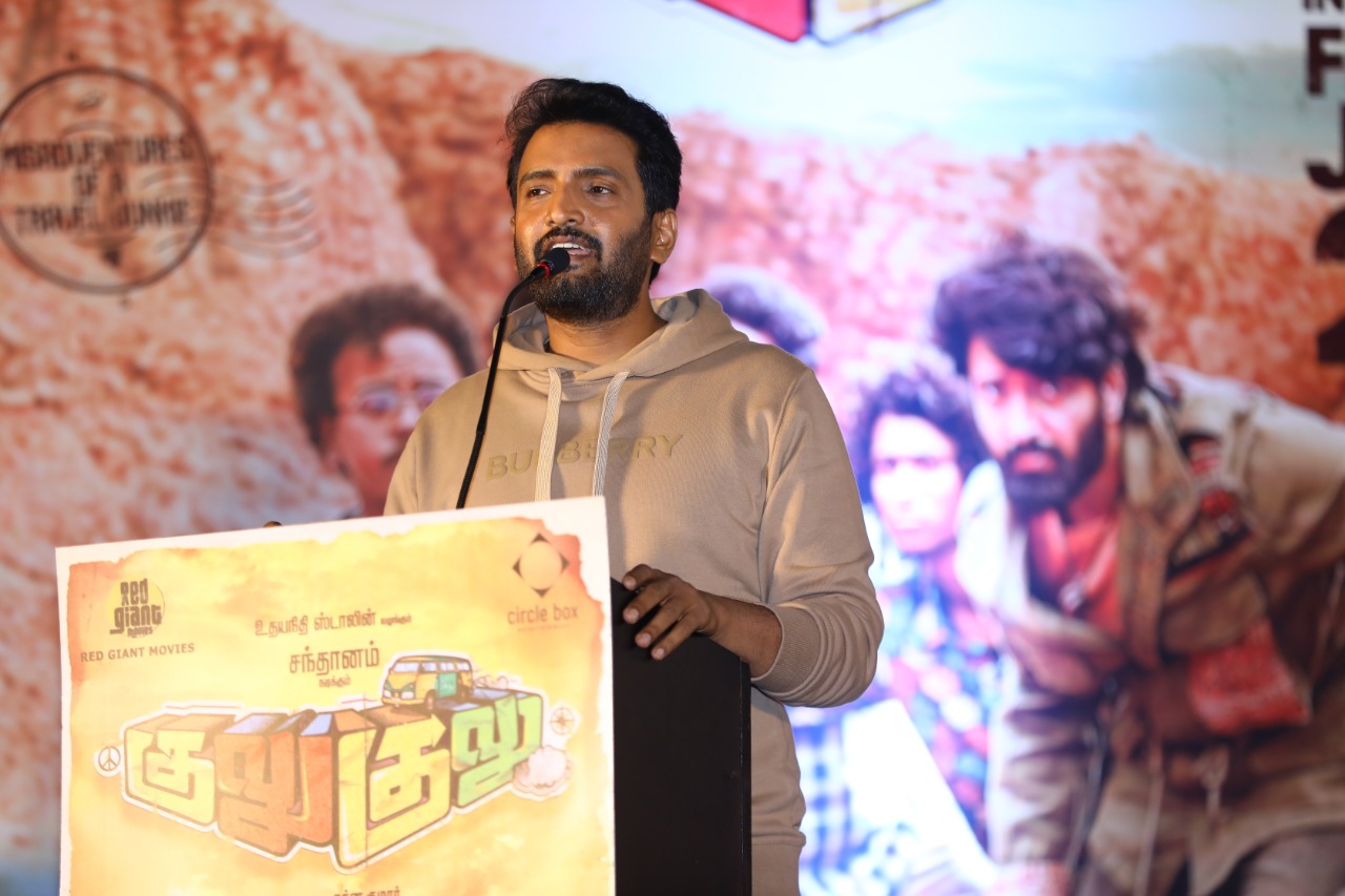 “ சந்தானம் எங்களது திரைப்பயணத்தில் பெரிய உதவியாய் இருந்திருக்கிறார். இந்த படத்தை விநியோகம் செய்யவிருக்கும் ரெட்ஜெயண்ட்க்கு எனது வாழ்த்துகள். இந்த படம் வெற்றியடைய எனது வாழ்த்துகள்.