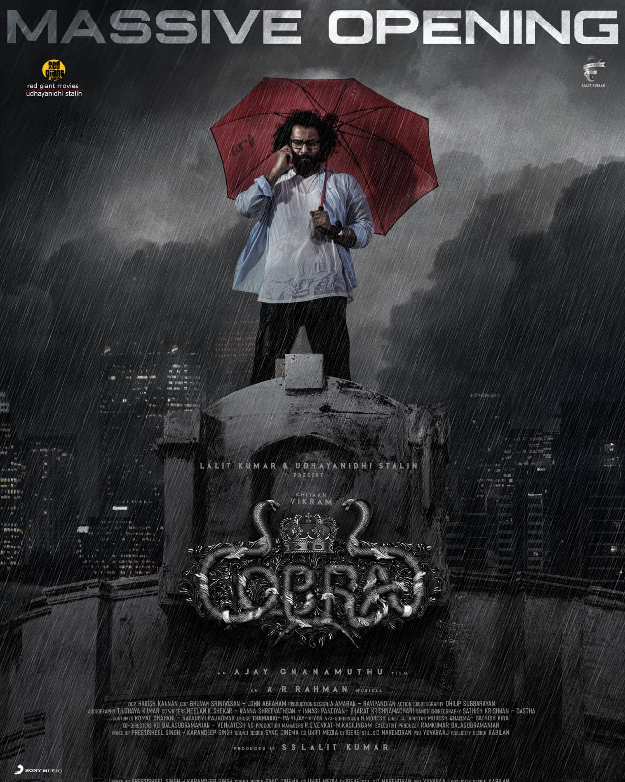 அஜய் ஞானமுத்து இயக்கத்தில் விக்ரம், ஸ்ரீநிதி ஷெட்டி, மிருணாளினி ரவி, மீனாட்சி, இர்ஃபான் பதான், ரோஷன் மேத்யூ, கே.எஸ். ரவிக்குமார், ரோபோ ஷங்கர் உள்ளிட்ட பலர் நடிப்பில் திரையரங்கில் வெளியாகியுள்ள படம் கோப்ரா.